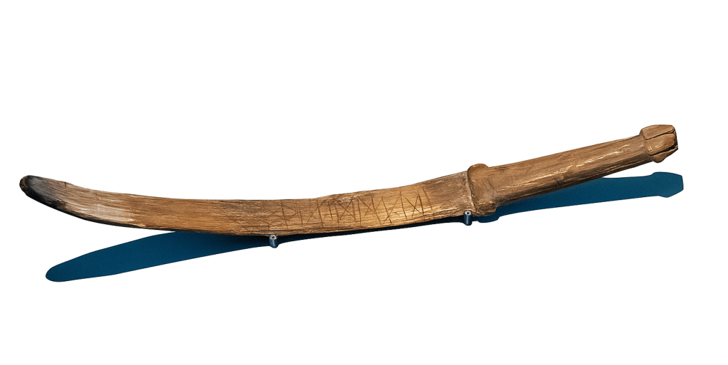 Another intriguing artifact is the wooden miniature sword excavated at the village of Arum in the province of Friesland, too, dated eighth century. It carries the runic inscription ᛗᛞᚫ ᛒᚩᛞᚪ to be pronounced as ‘edæ boda,’ meaning something like ‘oath messenger’ (Looijenga 2003). Earlier in this blog post, we discussed the bodthing, the commanded or requested thing. Therefore, we offer another translation, namely ‘oath commanded.’ In the Dutch language still pretty recognisable, namely: geboden eed. We like to imagine that the delegates of the thing had to make an oath on this wooden sword, and the sword lay visibly for everyone in the circle, because real weapons were not allowed at the meetings. Contrary to Looijenga, other scholars argue the inscription cannot be read as an oath since the Old Frisian word for that would have been eth and not edæ (Nijdam, Spiekhout & Van Dijk 2023).