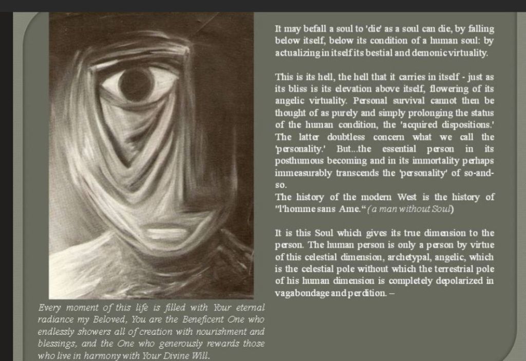 Frithjof Schuon* extended these insights by focusing on the spiritual essence of traditional art. For Schuon, beauty itself was a reflection of the Divine: