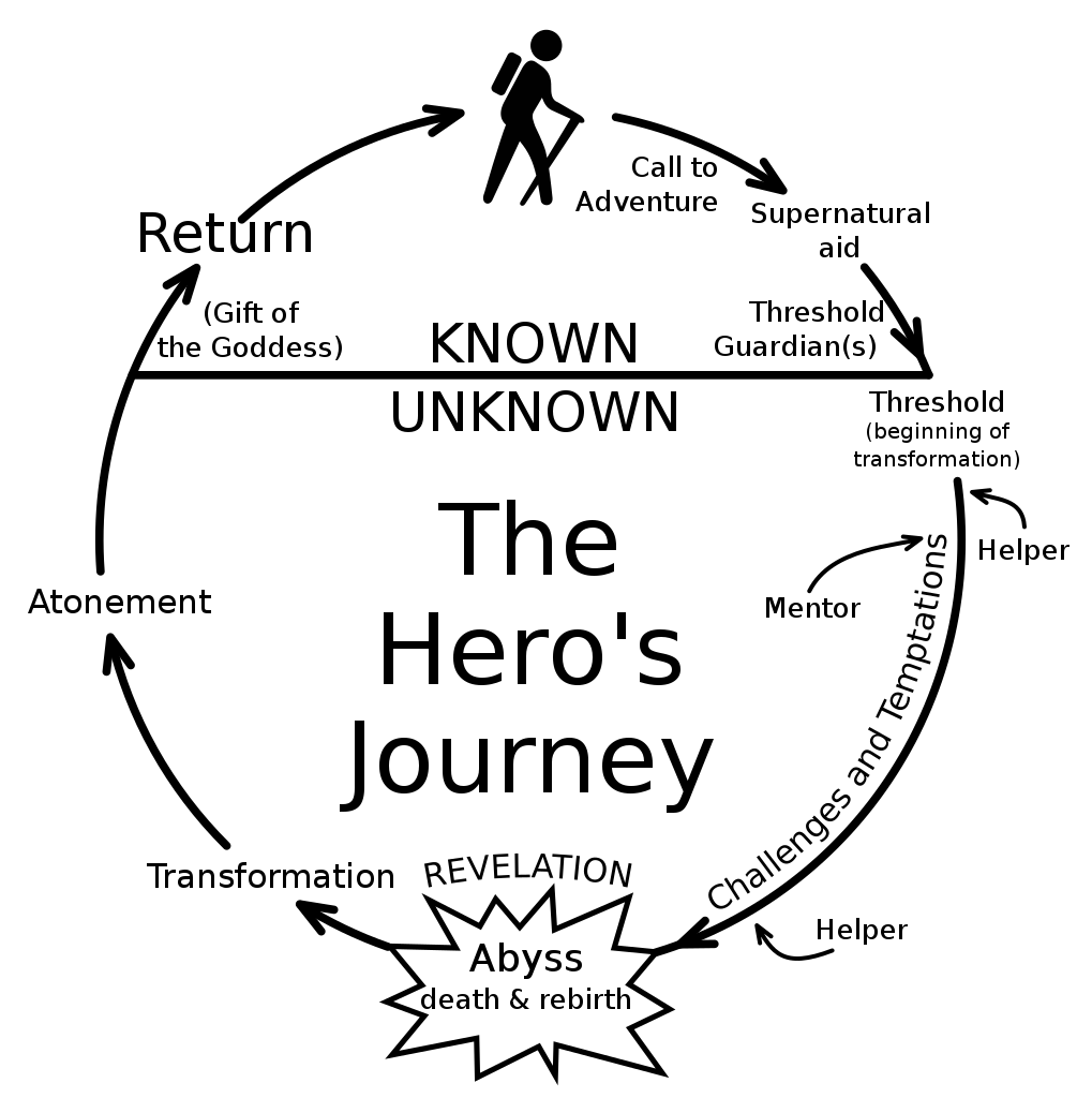 In laying out the monomyth, Campbell describes a number of stages or steps along this journey. “The hero’s adventure” begins in the ordinary world. He must depart from the ordinary world, when he receives a call to adventure. With the help of a mentor, the hero will cross a guarded threshold, leading him to a supernatural world, where familiar laws and order do not apply. There, the hero will embark on a road of trials, where he is tested along the way. The archetypal hero is sometimes assisted by allies. As the hero faces the ordeal, he encounters the greatest challenge of the journey. Upon rising to the challenge, the hero will receive a reward, or boon. Campbell’s theory of the monomyth continues with the inclusion of a metaphorical death and resurrection. The hero must then decide to return with this boon to the ordinary world. The hero then faces more trials on the road back. Upon the hero’s return, the boon or gift may be used to improve the hero’s ordinary world, in what Campbell calls, the application of the boon.