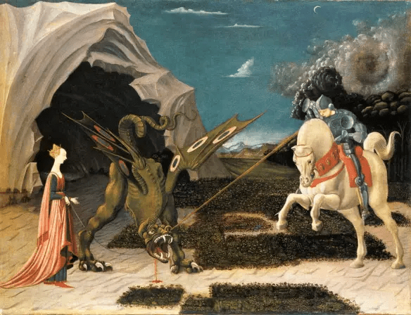 One of the best-selling books of all time was The Golden Legend, written by the Bishop of Genoa Jacobus de Voragine. In it he provided the medieval world with a definitive account of the lives of the saints, which everyone at the time believed to be historical facts gleaned by his scholarship from ancient records. In reality, like so many others that were to follow down the centuries, it was a motley mix of fact and, where there were no facts, a liberal dose of fiction. There was also an agenda.But it was a formula that gripped the attention of its readers, who preferred to believe in the fabulous and miraculous exploits of their heroes, just as in Celtic times when people loved to hear of the wondrous world of giants, gods and the Land of Faery. The saints were all these, and more, for they did the work of the one true God. Read More about St George: The Art of Dragon Taming