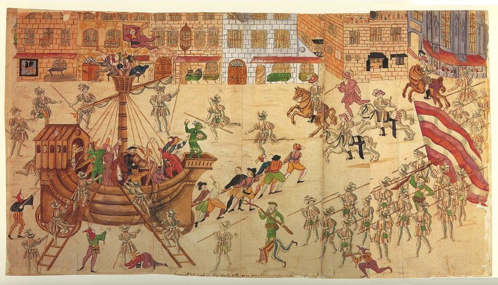 In many Christian sermons and texts, the example of a vessel is used to explain Christian doctrine: “the nave of the church of baptism”, “the ship of Mary“, etc. The writings show that processions with ship-like carts were held and lavish feasts were celebrated on the eve of Lent or the greeting of spring in the early Middle Ages.