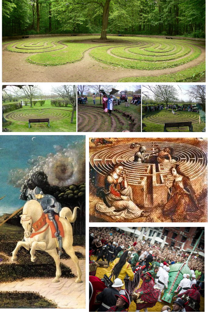 Yes there is green men, it is true. there is green man. Only one, but he is not also, his face green, but that is then Christians saying St. George, but we are saying Khidr (as) . Green man, chevalier St. George. Always in his hand he is killing a dragon. Very good. It is very very and a important symbol that they are making a figure on a horse through his hand a spear and killing a dragon. So many people they are taking only looking to that figure, but really that figure asking to teach people.