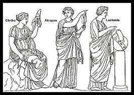 Clotho spins the thread (beginning of life). Lachesis measures its length (the life span). Atropos cuts it (death).
