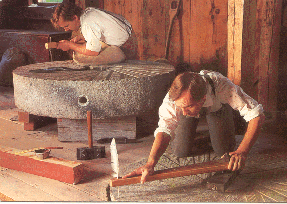 The spinning wheel and the millstone, when viewed together, can represent two fundamental aspects of human life: