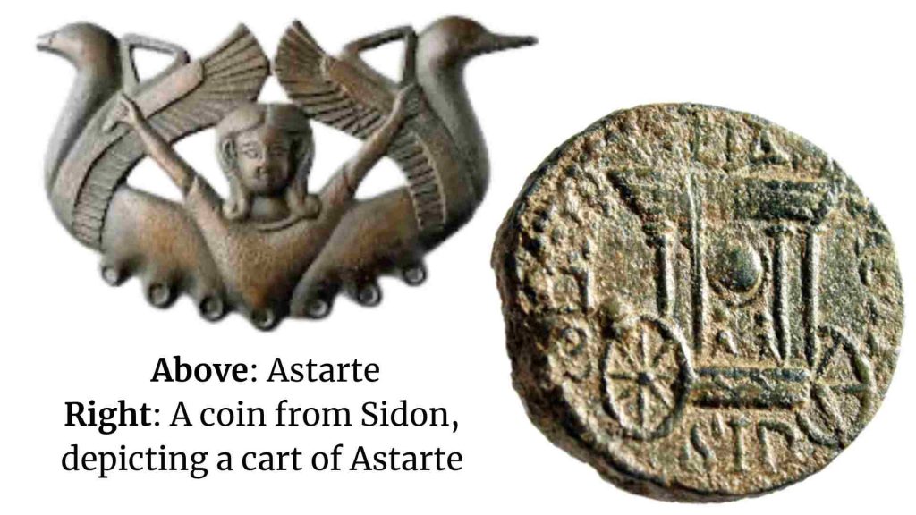 Astarte was a major goddess of the ancient Levant, especially among the Phoenicians, Canaanites, and later adopted by Egyptians. She sometimes combines avian facial features with the hands-on-hips pose and a chariot.