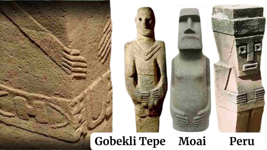 The motif predates the Bronze Age, with examples found at Göbekli Tepe and in numerous megalithic cultures worldwide. Its widespread use was likely due to practicality — it is simply the easiest way to carve hands in stone.