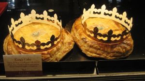 On this day we are making King cakes . They come with cardboard “crowns” to be worn by whoever gets the slice with the token and becomes monarch of the event.