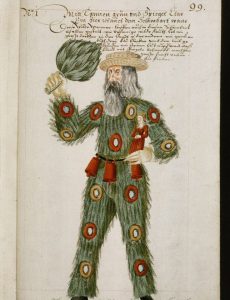The Romans identified their god Saturn with Cronus (an exile after being defeated by Zeus, landing in Italy (Virgil, 8.320-25)), who as a historical matter may have landed in Rome through Greek influence on Etruria, where he may originally have been an agricultural deity, especially of sowing. Saturn’s festival, called the Saturnalia, was traditionally December 17-23, which was both just after the winter sowing and at the winter solstice. After 153 BCE, when the civil New Year was transferred from March 1 to January 1, the Saturnalia also served as the winding down of the old year. As a result, the holiday became the classic Roman festival of dissolution. At the start of the festival in Rome, the cult statue of Saturn, who was bound by woolen fetters all year, was released, signifying a time of liberation. After a sacrifice to him and a banquet open to all people on December 17, the celebrations became a festival of reversal, which like in the Kronia was a reversion to the Golden Age. Masters waited on their slaves, who ate before their masters did. The formal toga was shunned in favor of colored Greek-style clothing (the synthesis), and both master and slave wore the conical felt cap (pilleus) which was the mark of a freedman (i.e., slaves, being not free, could not normally wear it, meaning that he was “free” for the period of the festival). Slaves were also entitled to free speech, and they could disrespect their masters. Slaves and masters played gambling games together, and there was also gambling on the streets. Women played a more prominent role than usual. People also wore masks and costumes. Overeating and drunkenness was the rule. In the imperial period (though not before), a mock “king” (actually princeps, perhaps in response to this informal title adopted by Augustus) was appointed for the duration of the festival, whose orders had to be followed.