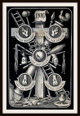 In the 5 cirkels is written: “Gave van Barmhartigheid“: Gift of Mercy , “Gave van Genade’: Gift of Grace, “Gave des Levens” ( in the heart): Gift of Life, ” Gave van Medelijden”: Gift of Compassion, “Gave van sterkte“: Gift of strength.