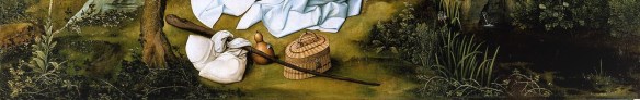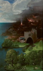 Notwithstanding the “predilection of his age for symbolism and allegory”, the eulogy of Ortelius that Bruegel ‘depicted many things that cannot be depicted’, the search for hidden truths, and the idea that this artist was deliberately obscure and cryptic, considering the dangers inherent in being openly critical, a degree of circumspection is only to be expected. With these three works, here we also have Bruegel’s major excursion into the world of Jheronimus Bosch. The first, the Rebel Angels, was at one time attributed to Bosch, the formal language of the second, Dulle Griet, is distinctly reminiscent of Bosch and the third, the Triumph of Death, has all the apocalyptic power of Bosch – and more; a landscape of death, one where the promise of redemption and resurrection is absent. God is nowhere to be seen. Or is it more we, our ego denies the existence of God?