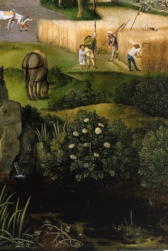 Human flesh is green she says and our blood possesses this special greening power. The “life force of the body” (the soul) was green. Whenever sex was involved—she said there was a particular brightness in the green. This greening power was at the heart of salvation and the reality of the Word was verdant life. This greenness connects us all together as humanity and shines forth giving us common purpose. It is the strength within us that manifests as a strong and healthy life. This greenness originates in the four elements: earth and fire, water and air. It is sustained by the four qualities: by dry and moist, by cold and hot; not only the body—but greenness of soul as well.