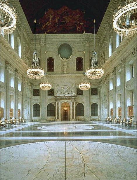 The Dutch expression “vierchaar spannen” refers to the tightening or raising of these ropes before the proceedings could begin. (Accompanied by the question whether the sun is high enough, ‘hoog genoeg op de dag‘, since the practice stems from the Middle Ages when these trials were held outdoors.) Most towns had the Vierschaar privilege to hear their own disputes, and the meeting room used for this was usually located in the town hall. Many historic town halls still have such a room, usually decorated with scenes from the Judgment of Solomon.Later it has been tranmsformed in great and impressive buildings as The Palace of the Dam in Amsterdam