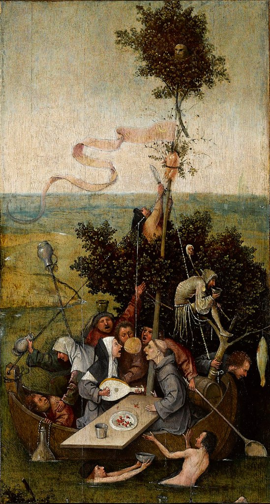 The concept makes up the framework of the 15th-century book Ship of Fools (1494) by Sebastian Brant, which served as the inspiration for Hieronymus Bosch’s painting, Ship of Fools: a ship—an entire fleet at first—sets off from Basel, bound for the Paradise of Fools. In it, Brant conceives Saint Grobian, whom he imagines to be the patron saint of vulgar and coarse people. In literary and artistic compositions of the 15th and 16th centuries, the cultural motif of the ship of fools also served to parody the “ark of salvation”, as the Catholic Church was styled.