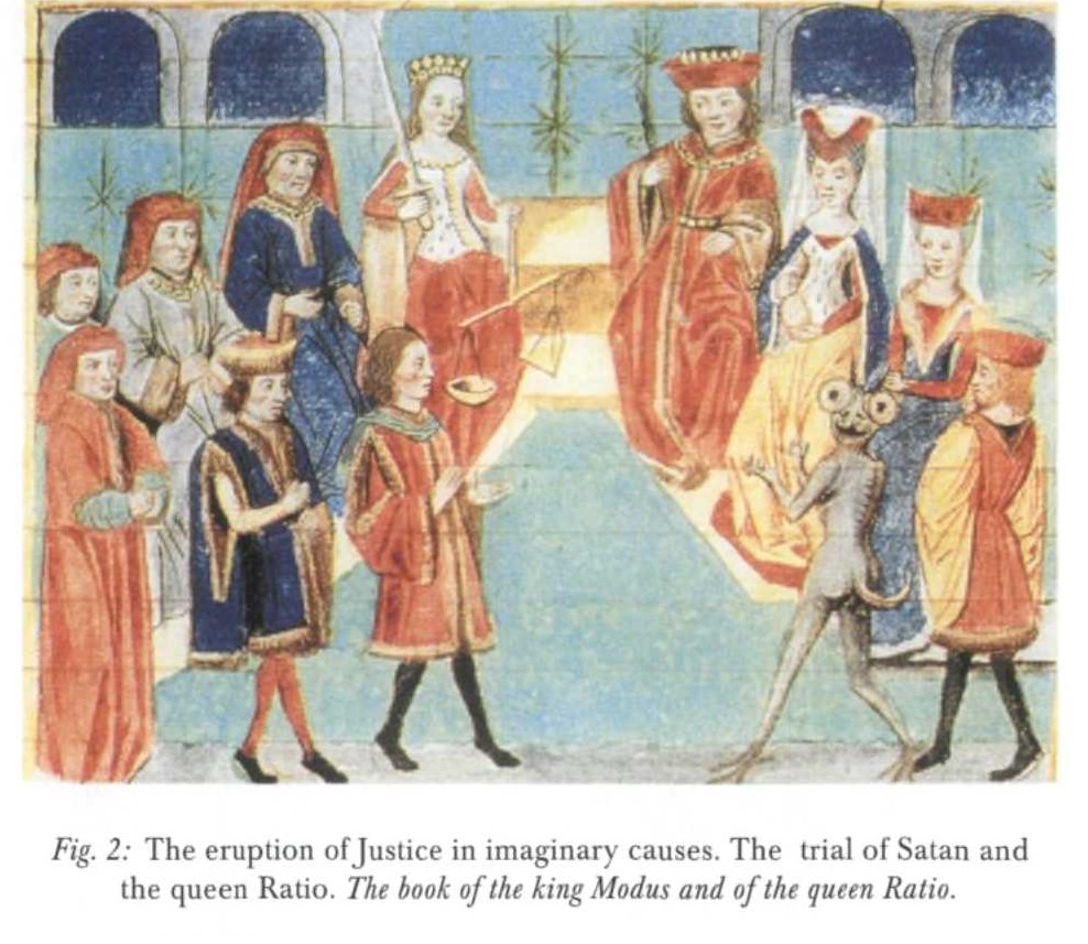 depicted as clear-sightedly considering the merits of the cases before her . Medieval images of justice based on figures of Christ, St. Michael, or secular rulers likewise provided them with the ability to make their judgments on the basis of visual evidence.