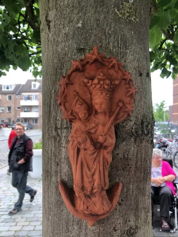The new tree is the great achievement of artist Ine van Grinsven. She also made replicas of the famous statue of the Virgin Mary. One was placed at the roots of the tree when it was planted in February. The other is attached to the trunk and, if it is good, will be absorbed by the trunk as ever, the original.