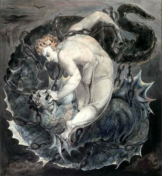 Note the similarity to the symbolism of Blake’s St Michael and the Dragon: that is, of the rationalising left hemisphere now demonising and attacking the intuitive and bodily right hemisphere world, just as the new Olympian ‘Sky Gods’ replaced and defeated the bodily, chthonic ‘Titans’). Note also how ‘civilisation’ is profoundly rooted in violence – from Thebes to the genocides from which the British and American empires have equally sprung up – and which ‘civilisation’ sees itself as the solution and rescuer from.