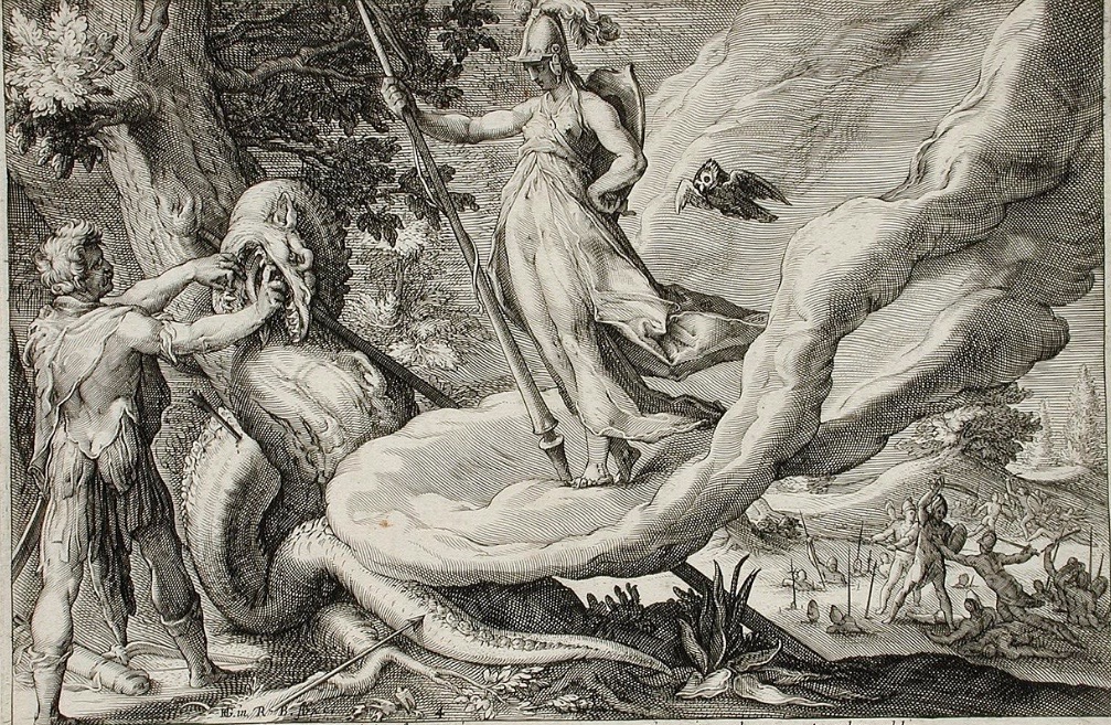 “Cadmus, the bringer of literacy and civilization, killed the sacred dragon that guarded the spring of Ares. The goddess Athena told him to sow the teeth, from which sprang a group of ferocious warriors called the spartoi. He threw a precious jewel into the midst of the warriors, who turned on each other in an attempt to seize the stone for themselves. The five survivors joined with Cadmus to found the city of Thebes.” It is notable that the myth of Cadmus associates the bringing of “literacy and civilisation” (through the technology of the written alphabet, “words”) with “sowing the dragon’s teeth” and the emergence of conflict and organised militarism. As McLuhan notes, the Cadmus myth “taught that the alphabet produced militarism … As the Greek myth of Cadmus points out, the phonetic alphabet was the greatest processer of men for homogenized military life that was known to antiquity.”