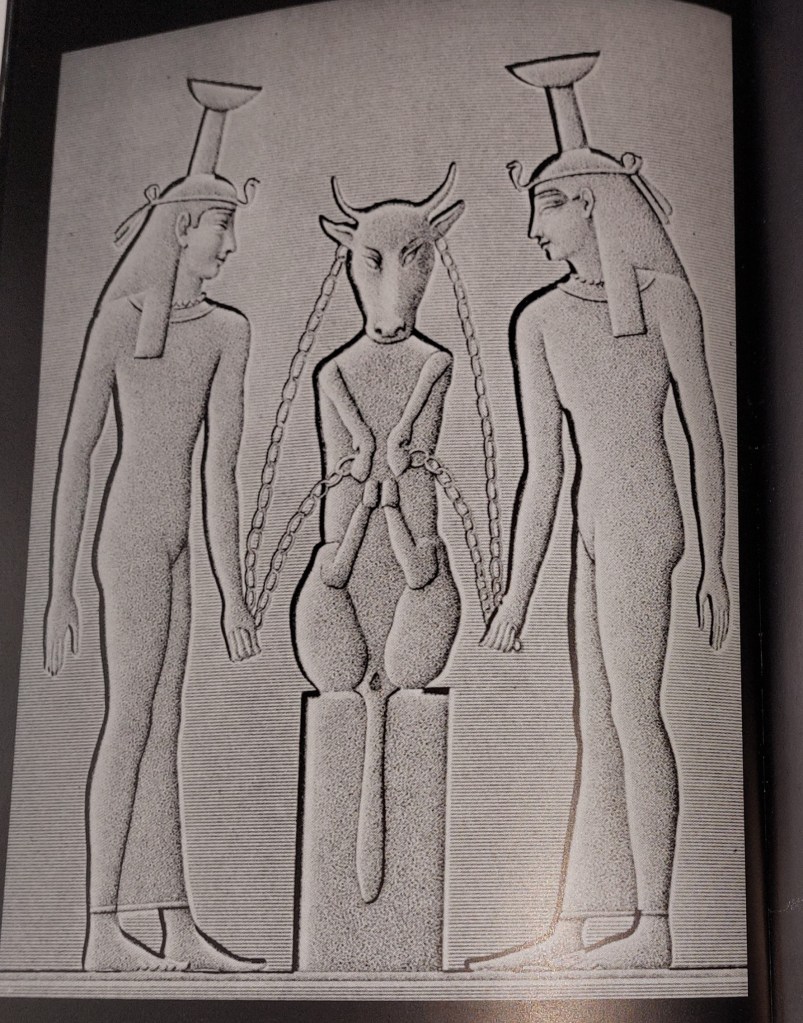 It is An Egyptian temple text, related with the God IAI, an aspect of the Solar God, the stubborn donkey. It shows the intellectual rebellion of our Ego.