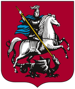 Saint George first appeared as the patron saint of Russia in 1415 and his popularity in Russia continued to grow. Saint George grew to be so popular in Moscow that 41 churches there were dedicated to him.[53] Saint George is still represented on the Coat of Arms of the city of Moscow as a knight on a white horse slaying a dragon with a spear. Today, a large number of statues of Saint George can be found in Moscow.[54]