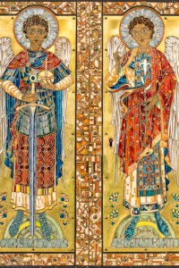 Many churches were decorated with images of the saint, e.g. St. George’s church in Staraya Ladoga, Russia was adorned with magnificent frescoes in 1167. From this early period, Saint George was seen both as a symbol of courage for keeping his faith in the face of death and, having been a soldier, as one the warrior saints who was at times depicted with Saint Theodore of Amasea. Saint George and Saint Theodore continued to be represented together in many churches, e.g. in mosaics in St Mark’s Basilica in Venice.[28]