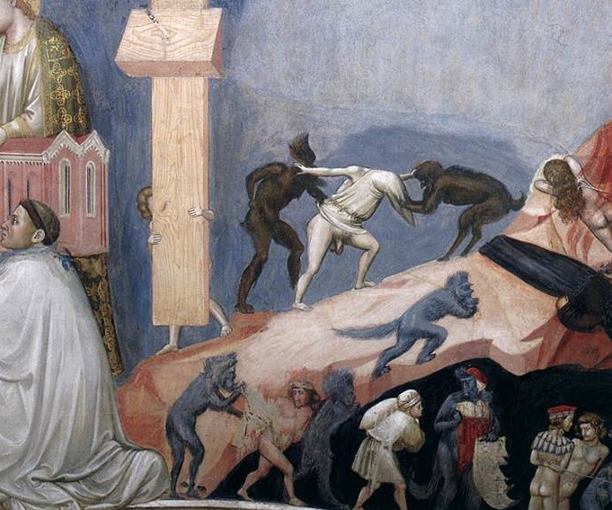 All the ropes are black except the one that comes from the mouth of the wolf, which is partly black and partly white. For the length of the ropes indicates how far people are willing to go in their stubborn pleasures; but though the one that symbolizes greed is partly black and puts forth many evils, yet some will come from that direction who are white with justice. And these latter will hasten to resist the son of perdition by ardent wanders, as My servant Job indicates about the righteous doer of justice, when he says: