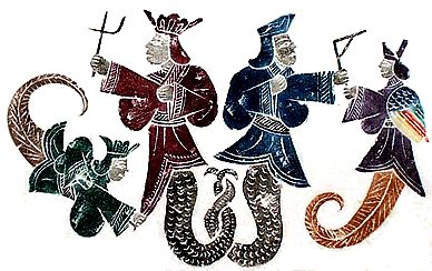 In the Chinese tradition, the brother and sister “couple”, Fu hi and Niu koua, is represented unified by their snake tails, symbol of the cosmic force and its twin currents.