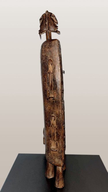 The meaning attached to both character attitudes is derived from this celestial vision. The feminine and right hand holds a vase turned “downwards” from which a bird emerges in the direction of the sun descent phase. This bird is connected to the descent current from Heaven to Earth. The masculine and left hand grasps a vase oriented “upwards” from which a bird flies away in the direction of the sun ascent phase. It corresponds to the ascent current from Earth to Heaven.