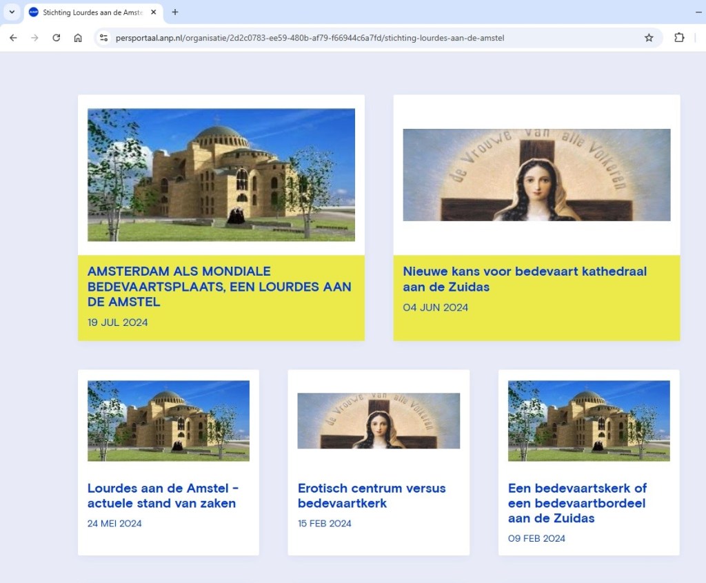 The Lourdes aan de Amstel foundation has been campaigning for the construction of a large Marian pilgrimage cathedral at the RAI in Amsterdam for many years. An initiative that aims to give a place to the devotion to the Amsterdam Marian apparitions that took place in the Amsterdam river district from 1945 to 1958, a devotion that has since spread worldwide.