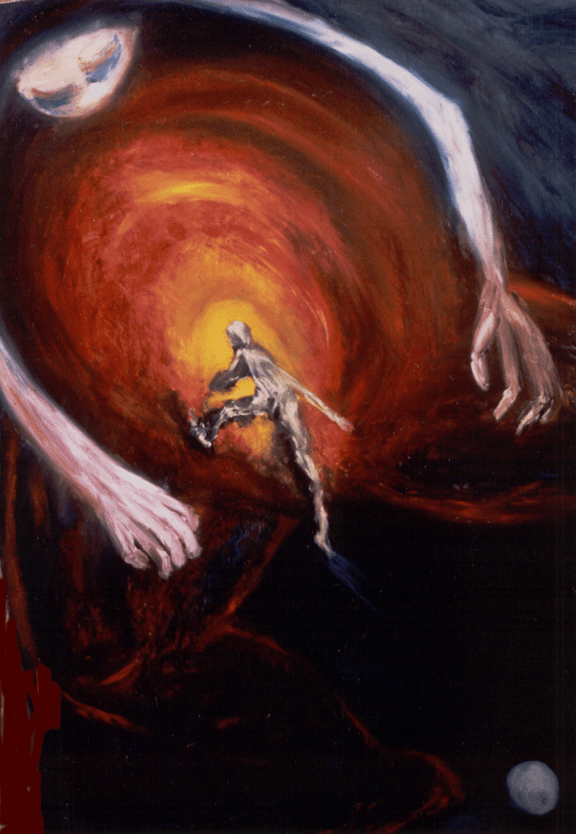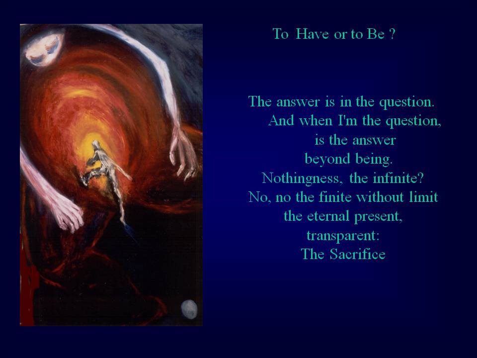 Our civilization is in decay. Because we have blown-up our ego. Cosmic Balance has been disturbed. The Origin – Cosmic Womb/Vacuum – “doesn’t tolerate” this. With the help of Her two Cosmic Forces of “Death and Rebirth” (“Stirb und Werde” – “Die and Become”-J.W. von Goethe see Goethe , the “refugee”) She breaks down our ego-accumulations, thus restoring the Original Balance and become a “refugee” for our times. See Spiritual exercise for the “Refugee” of our Times