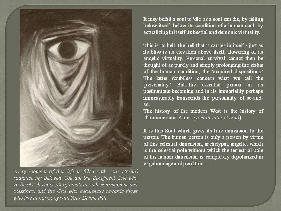 Once the illusion of duality has been transcended, all that remains in the soul is the divine Presence: the soul then finds in the depths of its being the divine effigy.