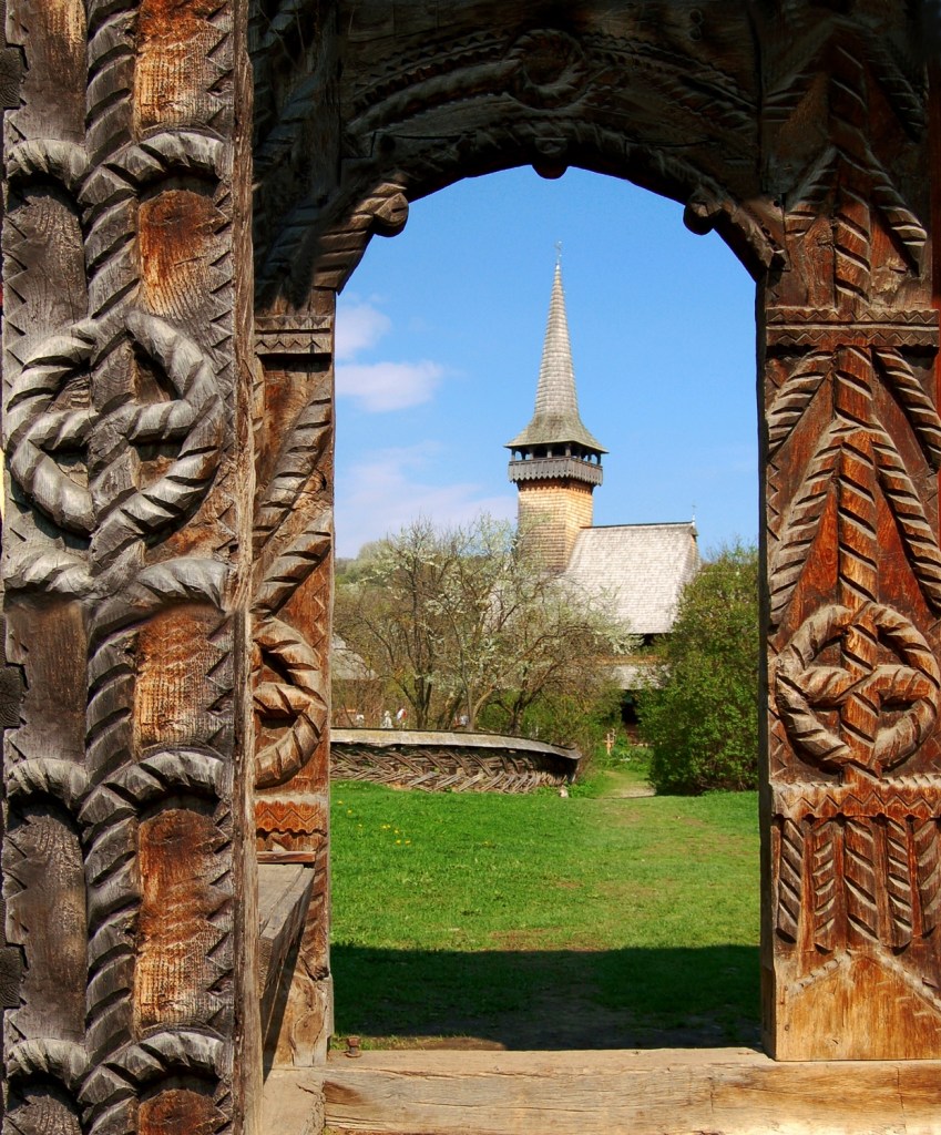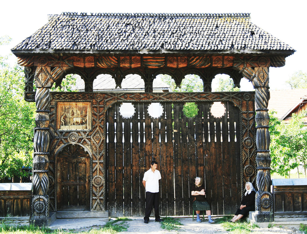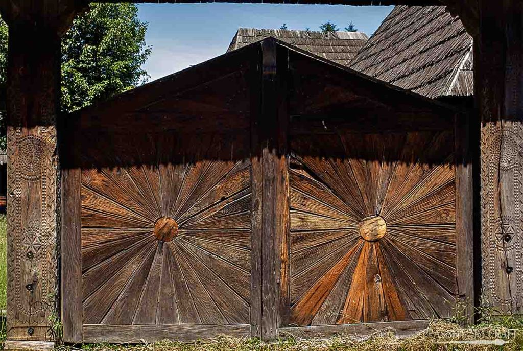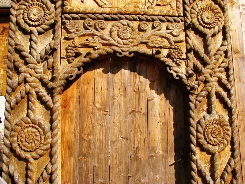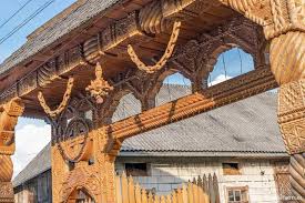 Maramureș is equally famous for its massive carved gates, which often stand taller than the homes they guard. These gates, typically built from oak, are adorned with interlaced patterns, symbols of eternity, sun wheels, and depictions of the tree of life. The rope motif, carved in twisted relief, signifies continuity between generations and the unbroken chain of Christian family lineage.