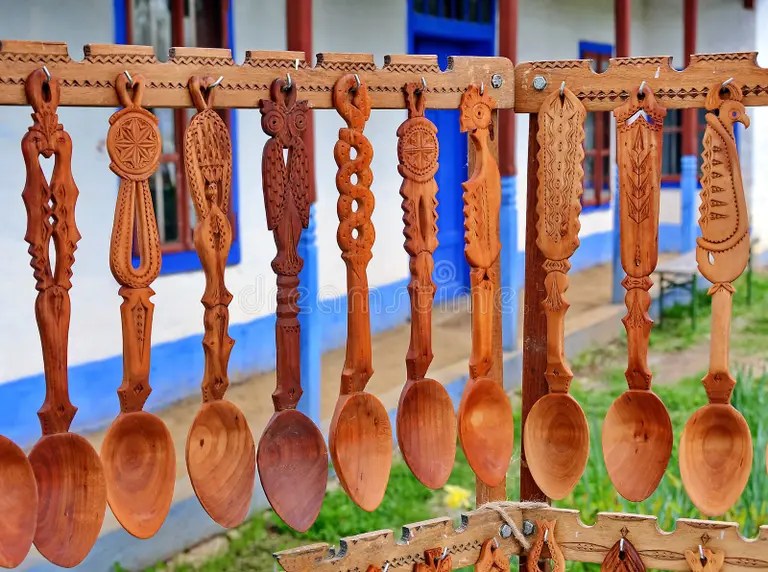 Even the most utilitarian objects in Romanian homes carried carved meaning. Wooden spoons were often shaped with care and gifted at significant moments, such as baptisms or the completion of a house. Spinning wheels used by women to prepare wool included floral and vine motifs, tying labor to beauty and symbol.
