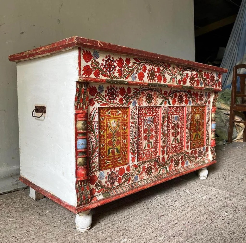 One of the most cherished items in a Romanian household was the dowry chest, given to a bride by her family and often carved by her father or groom. These chests, known as “lada de zestre,” were made of walnut or fir and served as storage for linens, clothing, and sacred items like icons. Carvings on the chest often included the rope of eternity, the tree of life, or prayers in Old Romanian script.